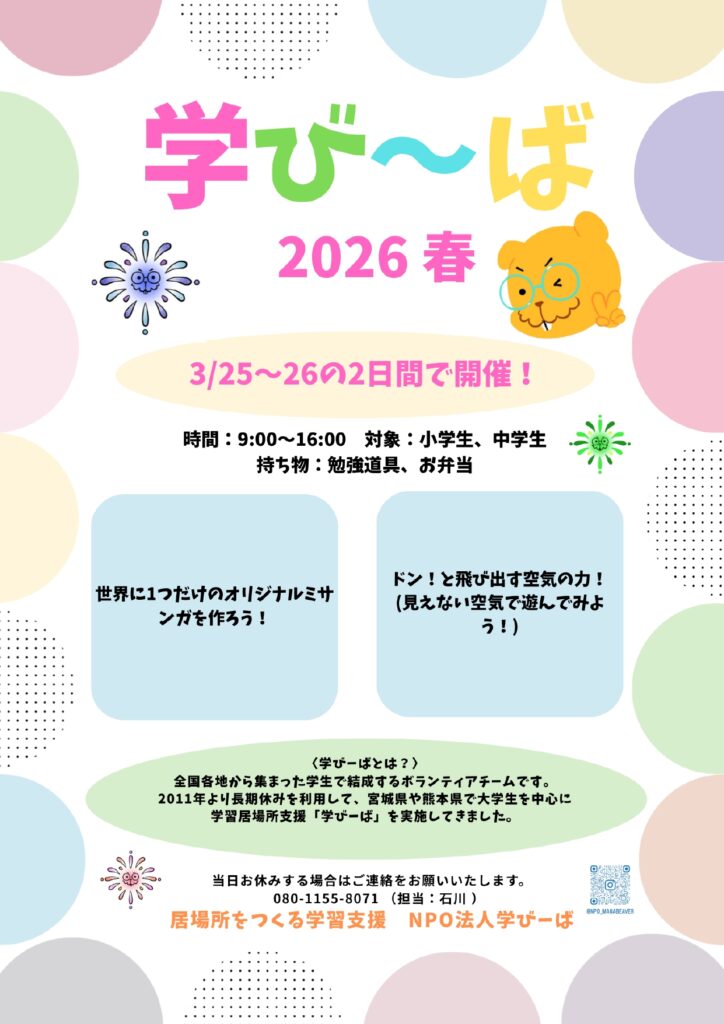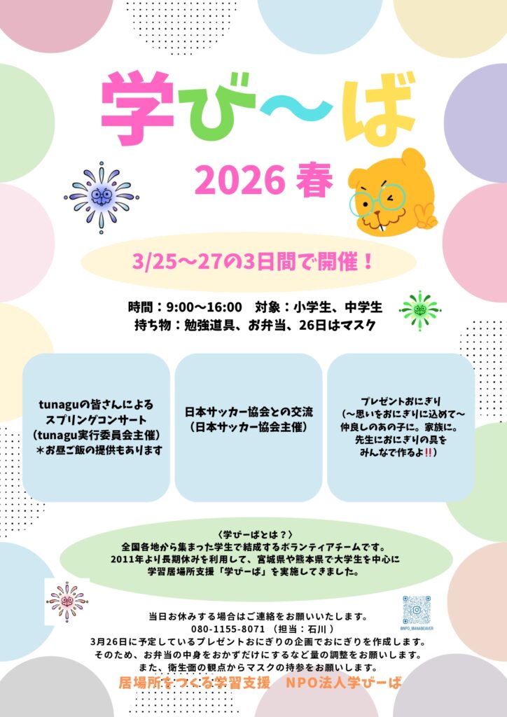 • 令和7年度(2026)春季活動 能登学びーば 3/25~27開催